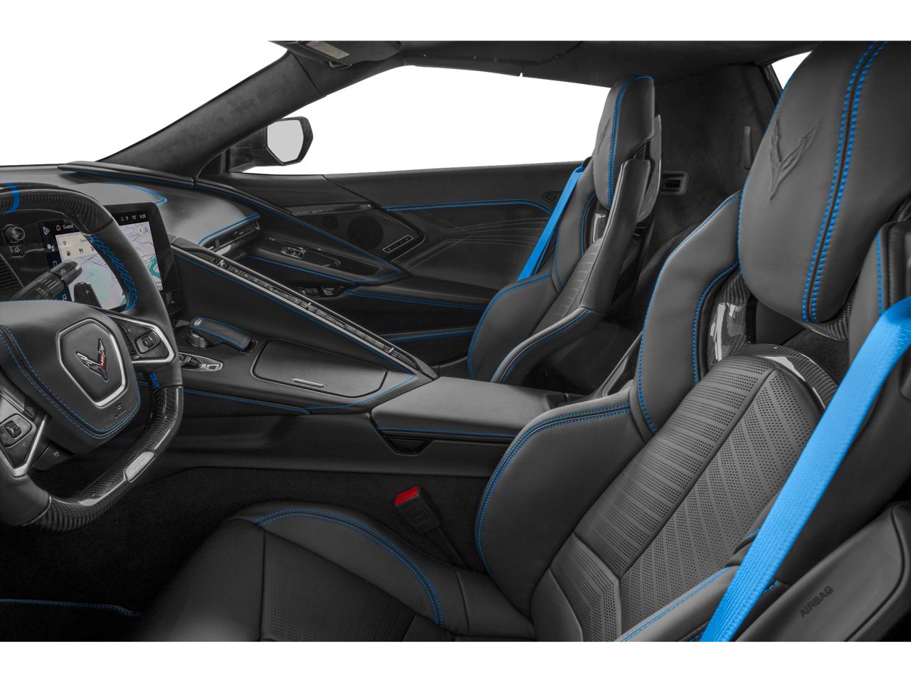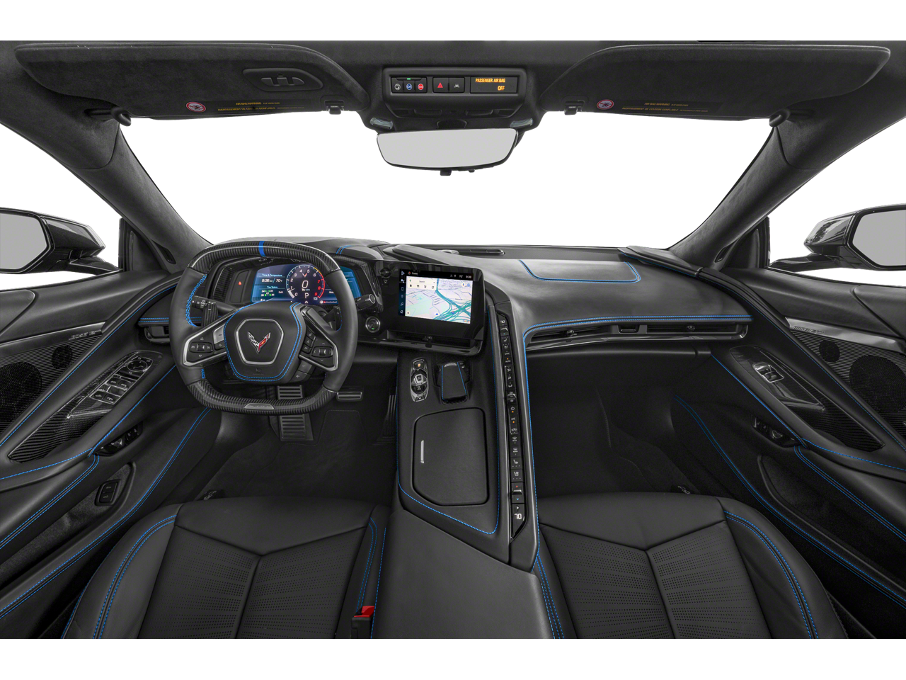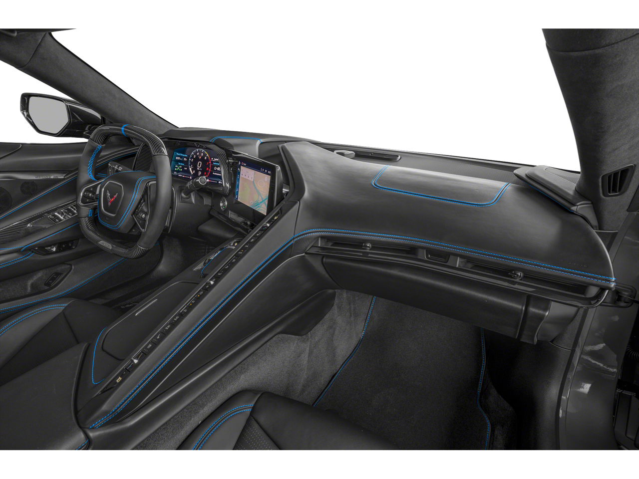 - Tension Blue/Twilight Blue Dipped, Napa leather seating surfaces with perforated inserts (Full color interior (instrument panel, doors and carpet.))