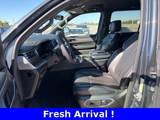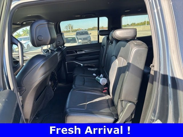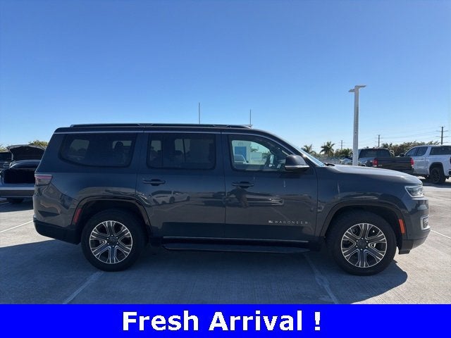CARFAX One-Owner. River Rock 4WD 3.0L I6 8-Speed Automatic Freshly Reconditioned!, One Owner Clean Carfax! New Car Trade-In!!, 10 Speakers, 118 MPH Maximum Speed Calibration, 3.55 Rear Axle Ratio, 3rd row seats: bench, 4-Wheel Disc Brakes, 40/20/40 2nd Row Bench Power Tip/Slide, 8-Passenger Seating, ABS brakes, Adjustable pedals, Air Conditioning, Alloy wheels, AM/FM radio: SiriusXM with 360L, Anti-whiplash front head restraints, Apple CarPlay/Android Auto, Audio memory, Auto-dimming door mirrors, Auto-dimming Rear-View mirror, Auto-leveling suspension, Automatic temperature control, Brake assist, Bumpers: body-color, Compass, Delay-off headlights, Driver door bin, Driver vanity mirror, Driver's Seat Mounted Armrest, Dual front impact airbags, Dual front side impact airbags, Electronic Stability Control, Emergency communication system: Wagoneer Connect, Exterior Parking Camera Rear, Four wheel independent suspension, Front anti-roll bar, Front Bucket Seats, Front Center Armrest w/Storage, Front dual zone A/C, Front fog lights, Front reading lights, Full Length Floor Console, Fully automatic headlights, Garage door transmitter, Genuine wood console insert, Genuine wood dashboard insert, Genuine wood door panel insert, Heated door mirrors, Heated front seats, Heated rear seats, Heated steering wheel, Illuminated entry, Knee airbag, Leather Trimmed Bucket Seats, Low tire pressure warning, Memory seat, Navigation System, Normal Duty Suspension, Occupant sensing airbag, Outside temperature display, Overhead airbag, Overhead console, Panic alarm, Passenger door bin, Passenger seat mounted armrest, Passenger vanity mirror, Pedal memory, Power adjustable front head restraints, Power door mirrors, Power driver seat, Power Liftgate, Power passenger seat, Power steering, Power windows, Quick Order Package 25J, Radio data system, Radio: Uconnect 5 Nav w/10.1" Display, Rain sensing wipers, Rear air conditioning, Rear anti-roll bar, Rear dual zone A/C, Rear reading lights, Rear seat center armrest, Rear window defroster, Rear window wiper, Reclining 3rd row seat, Remote keyless entry, Security system, Speed control, Speed-sensing steering, Speed-Sensitive Wipers, Split folding rear seat, Steering wheel memory, Steering wheel mounted audio controls, Tachometer, Telescoping steering wheel, Tilt steering wheel, Traction control, Trip computer, Turn signal indicator mirrors, Variably intermittent wipers, Ventilated front seats, Voltmeter, Wheels: 20" x 9.0" Premium 2 Aluminum.